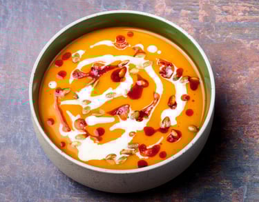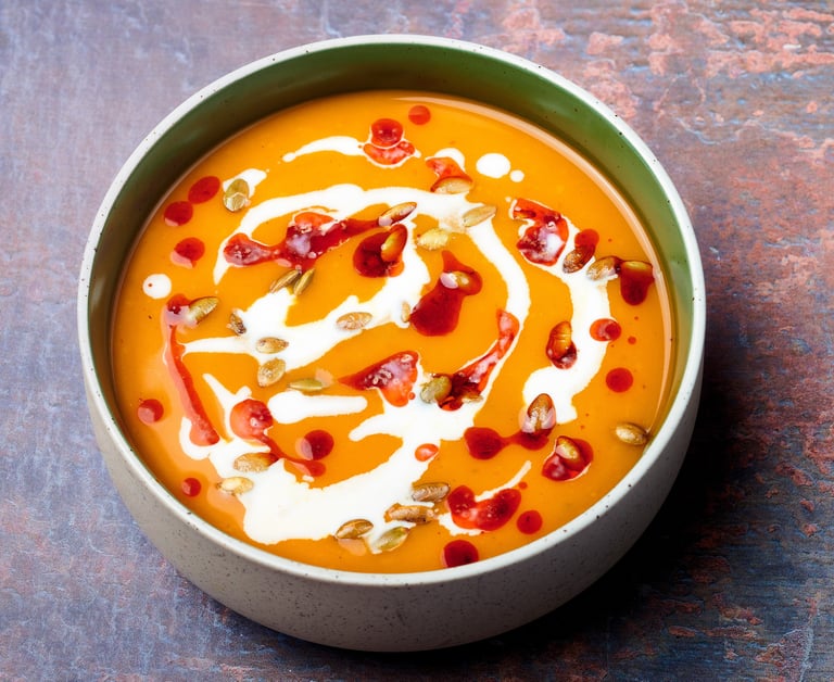 Warm, spicy, and unbelievably creamy — this Harissa Butternut Squash Soup is the perfect cosy recipe for autumn and winter. Roasted butternut squash gets blended with caramelised onions, fresh ginger, coconut milk, miso paste, and a hit of rose harissa for deep flavour and subtle heat. It’s naturally vegan, super comforting, and easy enough for beginners.