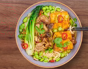 Learn how to build a flavour-packed broth, prep perfectly crispy tofu, and assemble a comforting, restaurant-style ramen bowl at home. Perfect for vegan cooking, quick dinner ideas, and anyone craving a satisfying, slurp-worthy noodle dish.